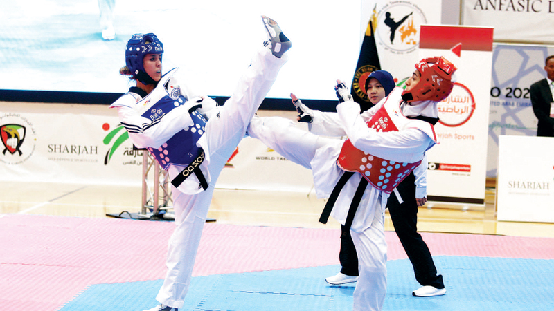 جانب من المنافسات الدولية التي يستضيفها نادي الشارقة للدفاع عن النفس. من المصدر
