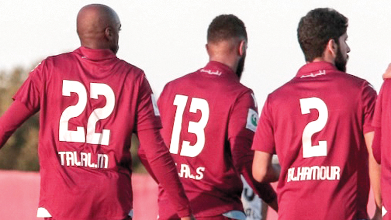 لاعبو الحمرية يحتفلون بالفوز على مصفوت. ■من المصدر