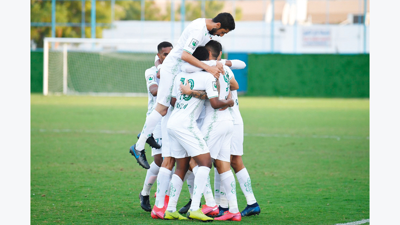لاعبو الإمارات يحتفلون بالفوز على التعاون. من المصدر
