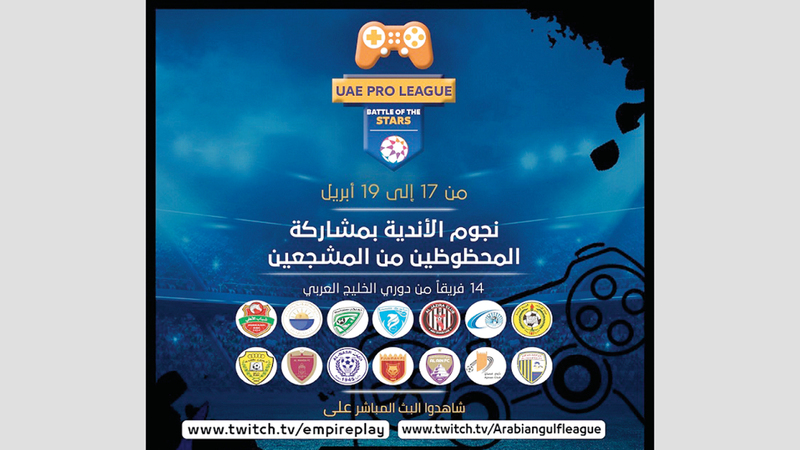 أعلنت رابطة المحترفين عن إطلاق بطولة «تحدي النجوم» لكرة القدم الافتراضية، بمشاركة 42 لاعباً ومشجعاً، يمثلون أندية دوري الخليج العربي الـ14، وتقام من 17 حتى 19 الجاري. ويتنافس المشاركون في سلسلة مواجهات على لعبة «فيفا 20» تجري بنظام Best of three، حيث يتواجه كل خصمين في ثلاث مباريات، ويتأهل الفائز بمباراتين من أصل ثلاث. وسيتم بث المباريات مباشرة عبر منصة Twitch، من الساعة السادسة وحتى الحادية عشرة مساء، أيام الجمعة السبت والأحد على الحسابين twitch.tv/Arabiangulfleague وtwitch.tv/empireplay.