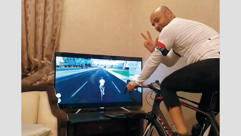 أحد المشاركين في تحدي «مضمارك في بيتك» للدراجات الهوائية.