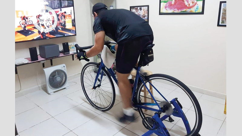 تحدي الطواف الافتراضي للدراجات الهوائية أقيم ضمن حملة «مضمارك في بيتك». من المصدر