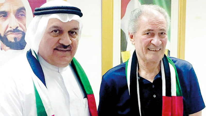جلفار مع رئيس الاتحاد الدولي حسن مصطفى في مناسبة سابقة. ■من المصدر