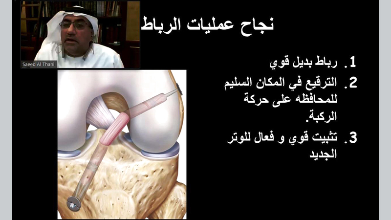 وقدم شرحاً تفصيلياً للمشاركين عن تشريح الركبة والرباط الصليبي للرياضي، وطرق الوقاية منه باتباع بعض التمارين لتقوية عضلات الساق والعضلات الأساسية بالجسم، والتدريب على تحسين طرق القفز والهبوط خلال ممارسة النشاط الرياضي، كما تم استعراض عوامل الخطر والأسباب التي قد تؤدي إلى إصابات الرباط الصليبي، منها تغيير الاتجاه أو التوقف بشكل مفاجئ، تلقي ضربة مباشرة في الركبة، الاصطدام بجسم صلب، والأعراض المصاحبة له وتؤكد الإصابة به ومنها، الإحساس بالألم وتورم الركبة، فقدان نطاق الحركة والشعور بعدم الثبات والمضاعفات المصاحبة.