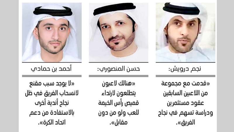 وتابع «قدمنا دراسة لإدارة النادي تدعم العودة إلى المنافسات، وتمت مناقشتها، وهي كفيلة بالنجاح»، مؤكداً أن مشاركة الفريق مجدداً في منافسات الأولى ستسمح بعودة لاعبي رأس الخيمة وأولياء أمورهم للوجود في أروقة النادي».