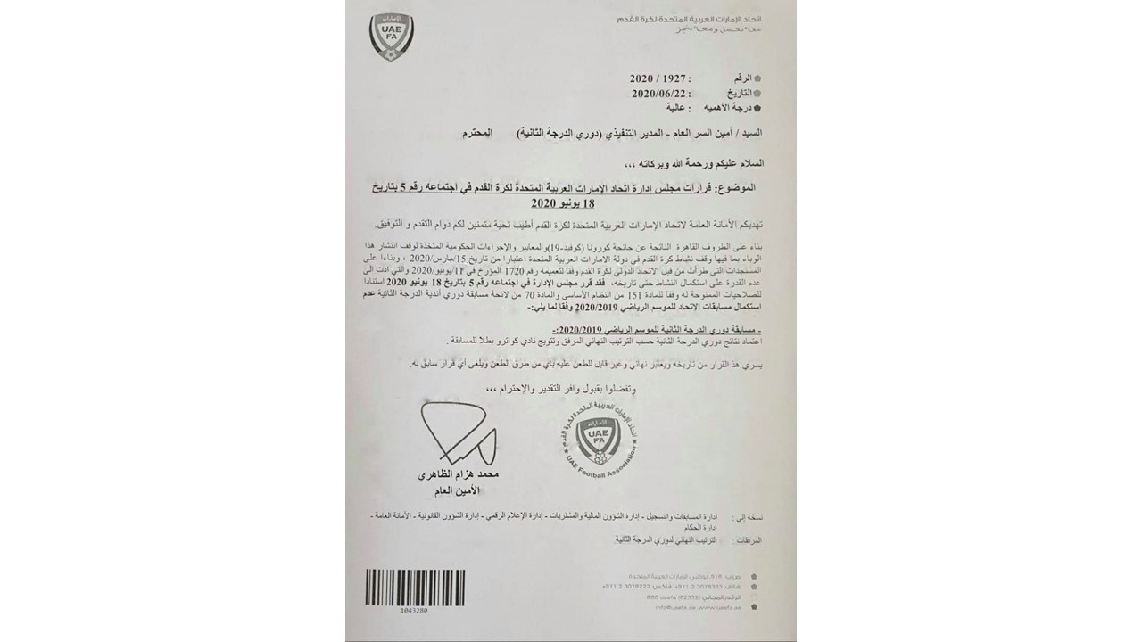 وتكمن المفاجأة في وثيقة قرار صادر عن مجلس ادارة اتحاد كرة القدم حول إنهاء موسم دوري الدرجة الثانية مع تتويج فريق كواترو بطلاً لدوري الدرجة الثانية، واعتماد ترتيب البطولة وفق الجولة قبل الأخيرة.