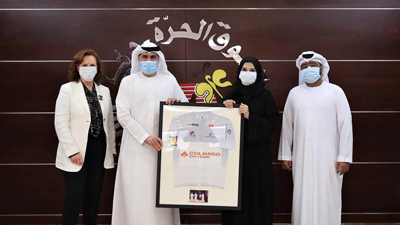زارت اللجنة النسائية والتسويق والتطوير باتحاد الدراجات، التي تترأسها مديرة طواف دبي النسائي الدولي نورة الجسمي، سوق دبي الحرة، لتقديم قميص الطواف لإدارة سوق دبي الحرة، تقديراً وتثميناً لدورها في رعاية ودعم الطواف.