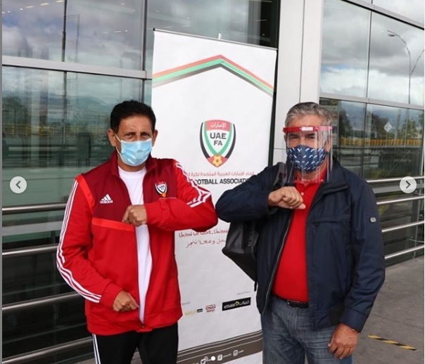رافق سفير الإمارات في كولومبيا سالم العويس، المدرب الكولومبي خورخي لويس بينتو، قبل توجهه إلى دبي، تمهيداً لتوليه تدريب المنتخب الوطني لكرة القدم.