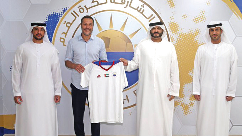 سيزار خلال استقباله من قبل مسؤولي نادي الشارقة. من المصدر