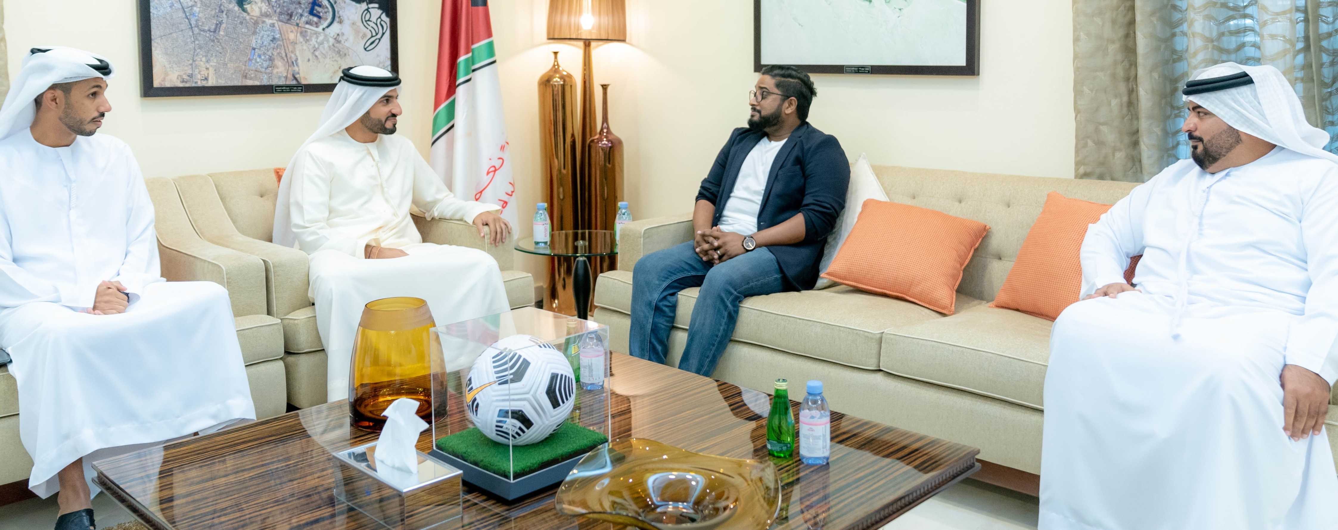 استقبل الشيخ راشد بن حميد النعيمي رئيس اتحاد كرة القدم بمكتبه صباح اليوم، رئيس اتحاد الكرة المالديفي بسام عادل جميل، لبحث سبل التعاون بين الاتحادين.
