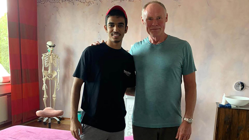 عبدالله النعيمي مع الطبيب الألماني أوفا فاكنر. من المصدر