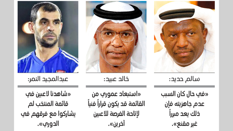 وقالوا لـ«الإمارات اليوم»: «سبق أن تم استدعاء لاعبين للمنتخب لم يشاركوا مع فرقهم في الدوري إلا في مباريات معدودة»، مشددين على «أهمية استدعائه حتى لو كانت نسبة جاهزيته لا تتعدى الـ50%».