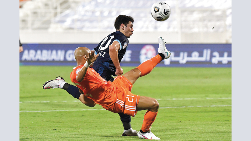عجمان وحتا فشلا في الوصول إلى الشباك. ■تصوير: أسامة أبوغانم