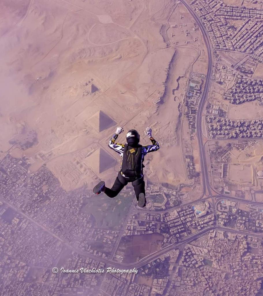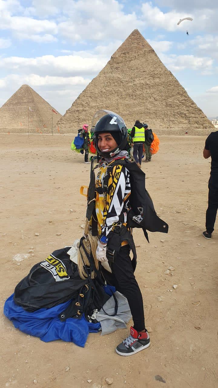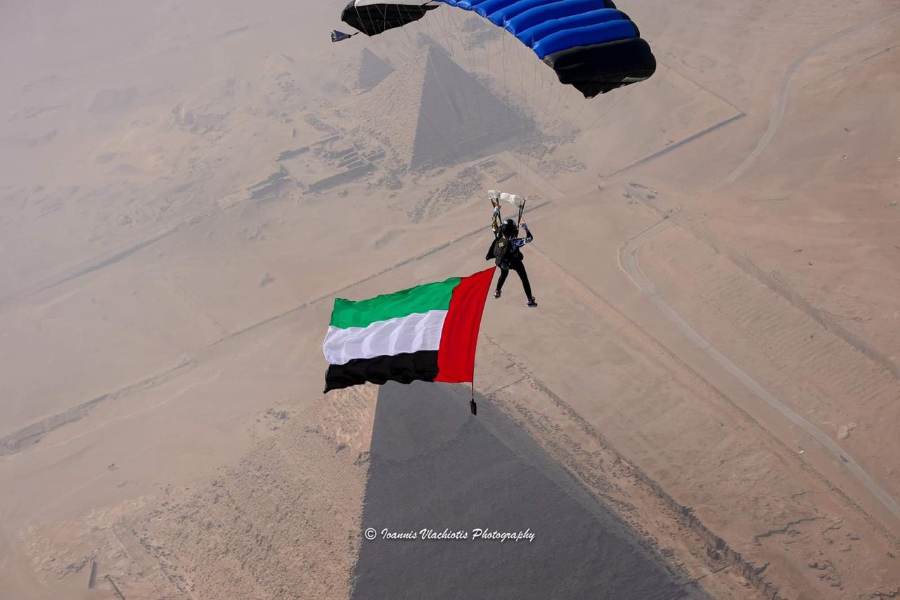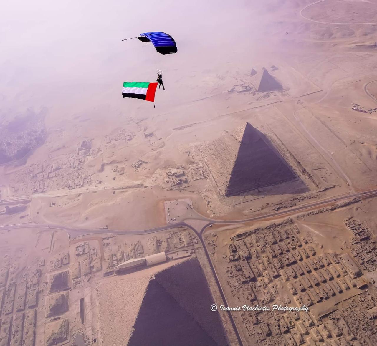 بالصور.. المواطنة شيخة أحمد تقفز بعلم الإمارات من أعلى «أهرامات الجيزة»