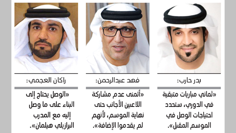 من جانبه، قال لاعب الوصل السابق والمحلل الرياضي، فهد عبدالرحمن، إن الفريق يحتاج إلى العديد من التغييرات، موضحاً: «أرى أن أهم خطوة هي الاستغناء عن اللاعبين الأجانب الأربعة، والأمر نفسه بالنسبة للاعبين المقيمين، خصوصاً أنهم لم يقدموا أي إضافة تذكر للفريق، والأفضل البحث عن اللاعبين الذين يحتاج إليهم الفريق، والقادرين على تقديم الإضافة المطلوبة».