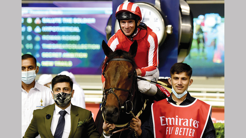 وقاد الفارس أدري دي فريز الجواد «ساليوت ذا سولجر» بإشراف فوزي ناس، والمملوك لفيكتورياس للفوز بلقب الجولة الثالثة في بطولة آل مكتوم للتحدي، البالغ إجمالي جوائزها 390 ألف دولار، إذ قطع مسار الشوط السادس الذي امتد لمسافة 2000 متر رملي، بزمن بلغ 2:03:09 دقيقة، بفارق 1.75 طول عن الجواد «هايبوثيتيكال» المملوك لسمو الشيخ حمدان بن محمد بن راشد آل مكتوم، بقيادة الفارس مايكل بارزالونا وإشراف سالم بن غدير، بينما حل بالمركز الثالث الجواد «رومان روسو» بقيادة الفارس أنطونيو فريزو، وإشراف ساتيش سيمار، والمملوك لزور بيفوف.