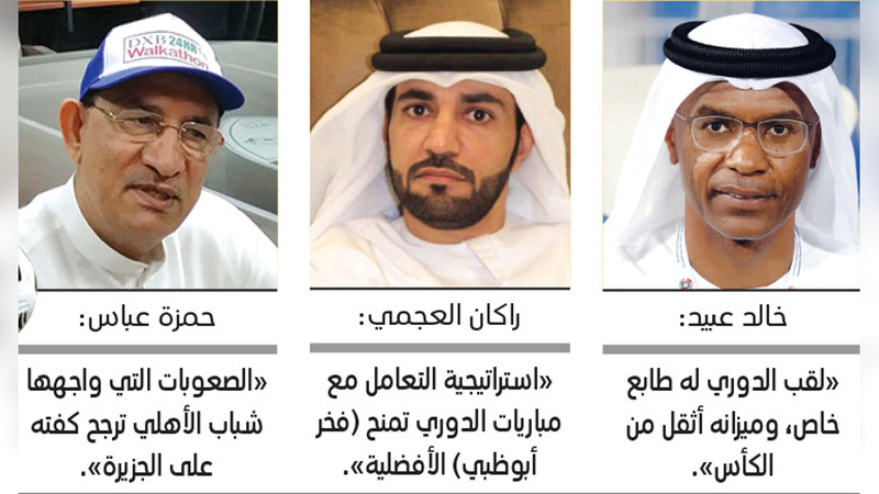 وزاد بقوله: «أرى أن استراتيجية التعامل مع مباريات الدوري تمنح الجزيرة أفضلية بنسبة قليلة، وذلك بالنظر إلى الظروف التي واجهها (فخر أبوظبي) ببدء الموسم بلاعبين أجنبيين فقط، بينما لم يتعاقد النادي مع أي لاعب في فترة الانتقالات الصيفية».