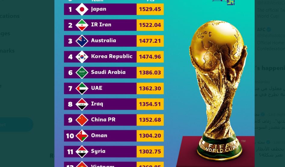 وبعد التصنيف الجديد لـ"فيفا"، يأتي في المستوى الأول منتخبي اليابان وإيران، وفي المستوى الثاني أستراليا وكوريا الجنوبية، وفي الثالث السعودية والإمارات، وفي الرابع العراق والصين، وفي الخامس عمان وسوريا، والمستوى السادس فيتنام ولبنان.