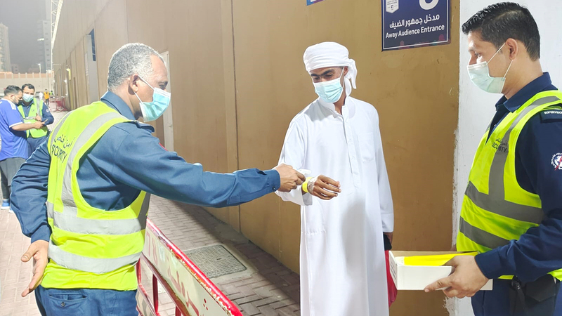 وجرى دخول الجماهير للمدرجات في سهولة تامة، وفقاً للإجراءات التي تم الإعلان عنها في وقت لاحق، الخاصة بالسماح لـ60% من السعة الرسمية لكل استاد، مع وضع ستة اشتراطات خاصة بوجود المشجعين في المدرجات. وكان الحضور متاحاً لمن ظهر عبر تطبيق «الحصن» حصوله على الجرعة الثالثة من اللقاحات المعتمدة بالدولة، أو من لم يُكمل ستة أشهر من حصوله على الجرعة الثالثة، مع إبراز نتيجة الفحص السلبي «pcr» لمدة لم تتجاوز 48 ساعة من تاريخ إقامة المباراة، مع ضرورة الالتزام بالتباعد الجسدي. وشملت فئة حضور الجماهير للمباريات الأفراد ممن تجاوزت أعمارهم 16 عاماً في ما فوق، مع ارتداء الكمامات طوال الوقت، إذ يوجد أفراد في المدرجات للتأكيد على التزام المشجعين في المدرجات بارتداء الكمامات، مع الالتزام بالتباعد المقرر داخل المدرجات.