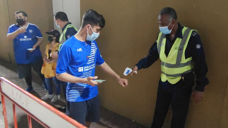 ونص البروتوكول على قياس درجة الحرارة لكل الموجودين في الملعب، سواء العاملين في الاستاد أو مسؤولي المباريات والفريقين أو الإعلام وجهات البث والنقل التلفزيوني والمشجعين (مع عدم السماح بدخول الشخص الذي تصل درجة حرارته 37.5 درجة مئوية أو أعلى، وتحويله إلى غرفة العزل، وإعادة فحصه مرة أخرى بعد 15 دقيقة، وفي حال استمرت درجة حرارته على ما هي أو زادت يمنع من الدخول، والزامه بالتوجه إلى المستشفى لإجراء امزيد من الفحوص.