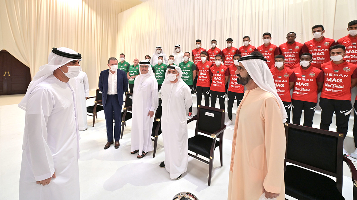 جاء ذلك خلال استقبال صاحب السمو الشيخ محمد بن راشد آل مكتوم، بحضور سمو الشيخ أحمد بن محمد بن راشد آل مكتوم، رئيس مجلس إدارة نادي شباب الأهلي، لاعبي الفريق الأول لكرة القدم والجهازين الإداري والفني، وأعضاء مجلس إدارة نادي شباب الأهلي.