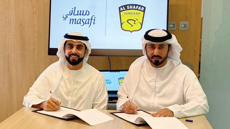 وقع، أول من أمس، فريق الشعفار جميرا للدراجات الهوائية وشركة مياه مسافي بمقر الشركة في دبي، اتفاقية رعاية لعام، قابلة للتجديد.