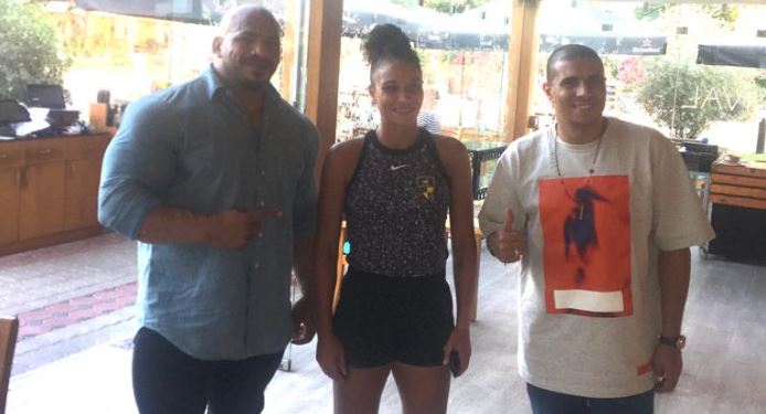 بيغ رامي والنجم المصري السابق محمد زيدان مع اللاعبة ساندرا سمير. من المصدر