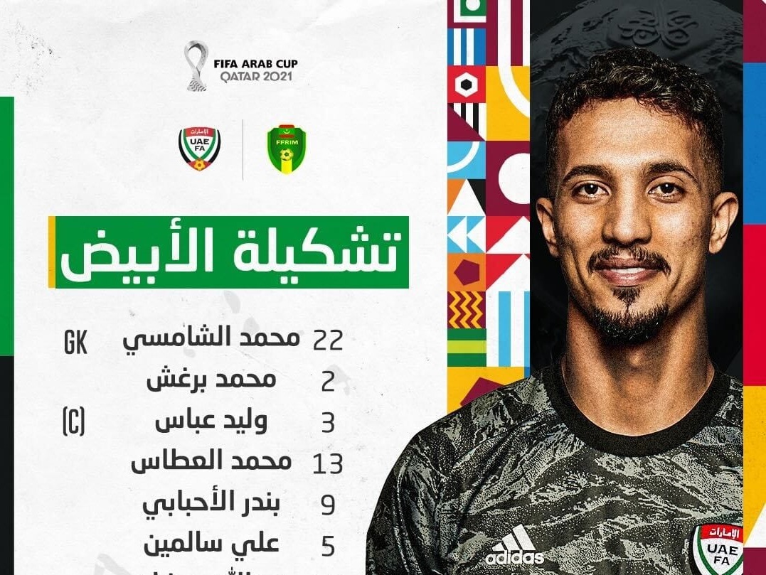 تشكيلة الإمارات الأساسية لمباراة موريتانيا في كأس العرب