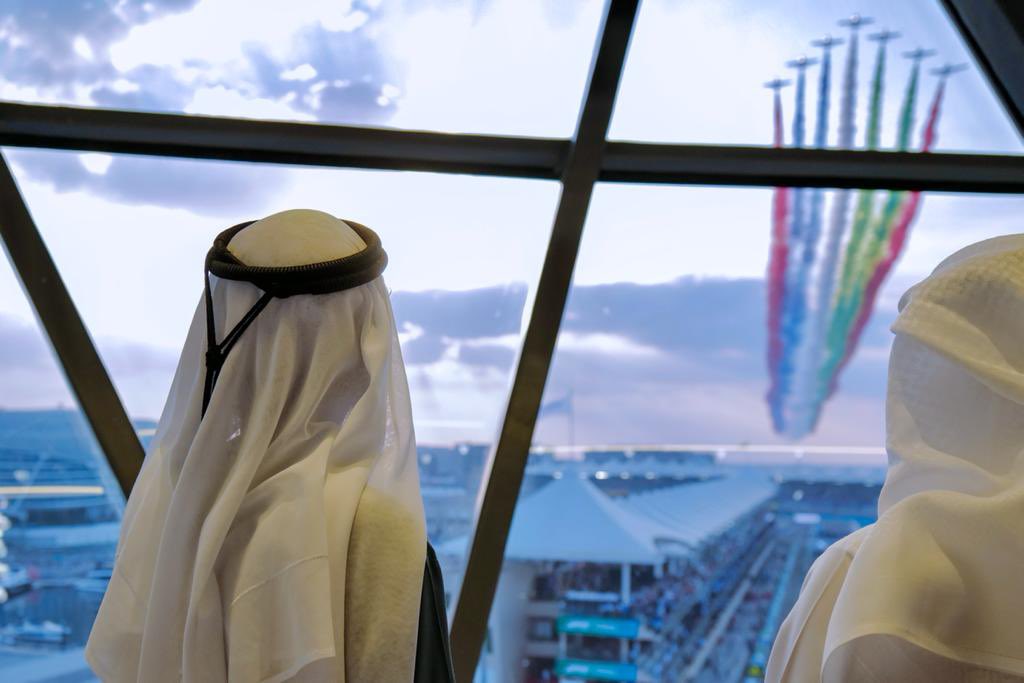 شهد صاحب السمو الشيخ محمد بن راشد آل مكتوم نائب رئيس الدولة رئيس مجلس الوزراء حاكم دبي وصاحب السمو الشيخ محمد بن زايد آل نهيان ولي عهد أبوظبي نائب القائد الأعلى للقوات المسلحة وصاحب السمو الملكي الأمير سلمان بن حمد آل خليفة ولي العهد رئيس مجلس الوزراء في مملكة البحرين الشقيقة، منافسات "جائزة الاتحاد للطيران الكبرى للفورمولا 1 ـــ الجولة الختامية لبطولة العالم في موسم 2021 " التي أقيمت على حلبة مرسى ياس في العاصمة أبوظبي، وذلك بحضور رؤساء الوفود من الدول الشقيقة والصديقة ضيوف الدولة وسمو الشيوخ.