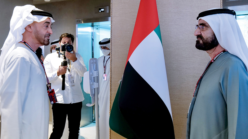 شهد صاحب السمو الشيخ محمد بن راشد آل مكتوم، نائب رئيس الدولة رئيس مجلس الوزراء حاكم دبي، وصاحب السمو الشيخ محمد بن زايد آل نهيان، ولي عهد أبوظبي نائب القائد الأعلى للقوات المسلحة، وصاحب السمو الملكي الأمير سلمان بن حمد آل خليفة، ولي العهد رئيس مجلس الوزراء في مملكة البحرين الشقيقة، منافسات «جائزة الاتحاد للطيران الكبرى للفورمولا1 - الجولة الختامية لبطولة العالم في موسم 2021»، التي أقيمت على حلبة مرسى ياس في العاصمة أبوظبي، وذلك بحضور رؤساء الوفود من الدول الشقيقة والصديقة ضيوف الدولة وسمو الشيوخ.