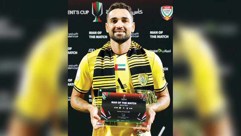 لاعب الوصل جيلبيرتو أوليفيرا فاز بجائزة رجل المباراة. من المصدر