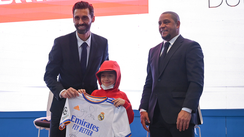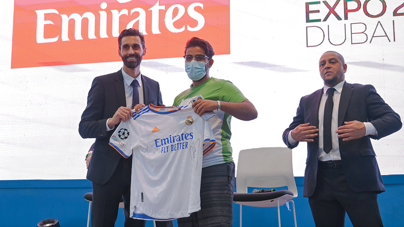 وحرص النجمان على التفاعل والإجابة عن تساؤلات جمهور ريال مدريد، الذي حضر أمس فعالية «أساطير ريال مدريد»، التي أقيمت في مركز اللياقة البدنية والملاعب في منطقة التنقل في «إكسبو دبي 2020»، في فعالية تخللها توزيع الهدايا التذكارية، وقمصان ريال مدريد الموقعة من النجوم.