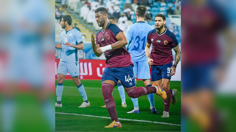 فارس جمعة سجل هدف الوحدة بشباك بني ياس. من المصدر