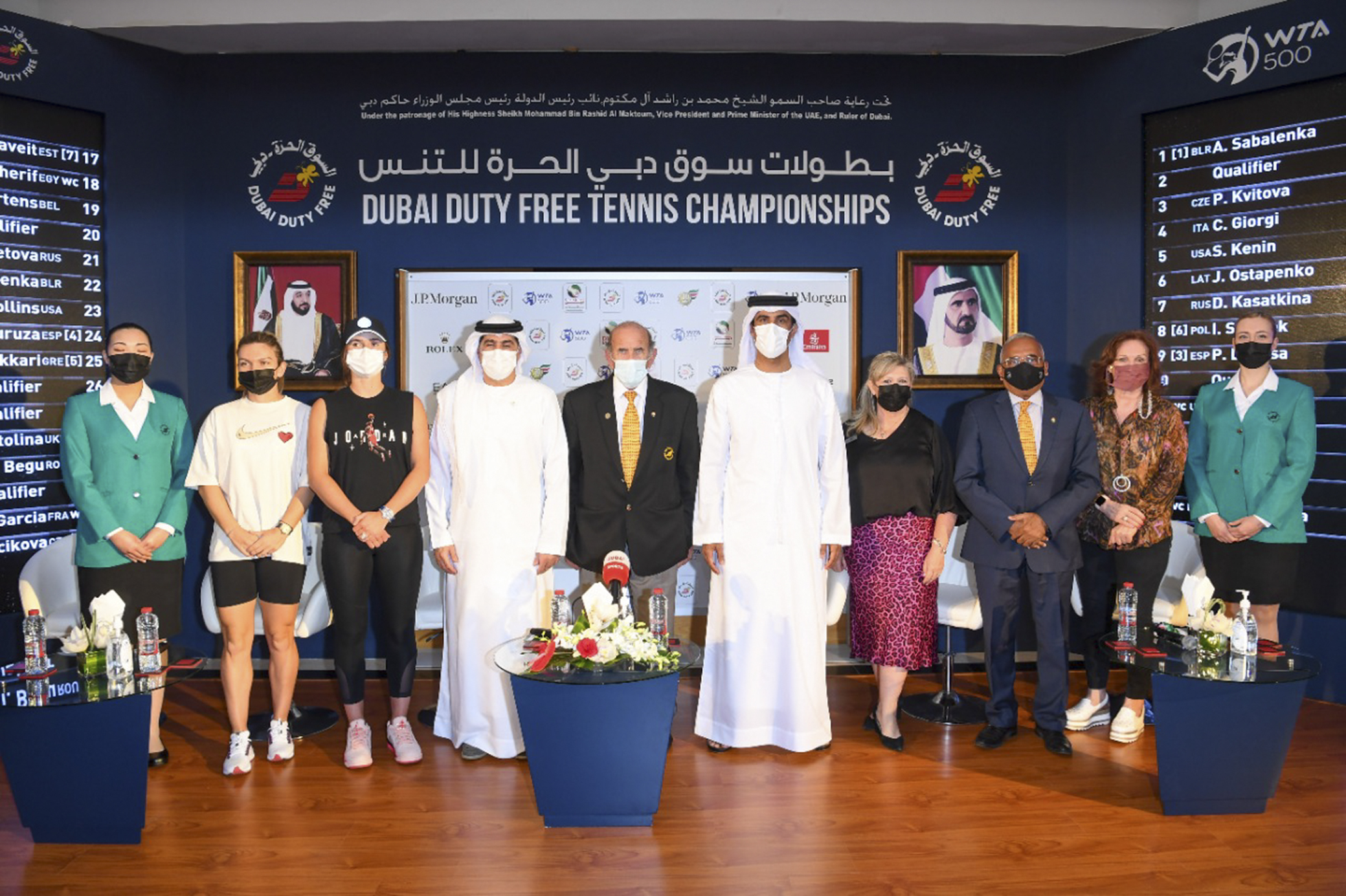 حضر مراسم القرعة، النائب التنفيذي لرئيس مجلس إدارة سوق دبي الحرة الجهة المالكة والمنظمة للحدث، كولم ماكلوكلين، ومدير بطولات" سوق دبي الحرة" للتنس صلاح تهلك، وممثلة رابطة اللاعبات التنس المحترفات دونا كيلسو، بجانب نجمتا التنس وحاملتا لقب دبي في مناسبتين، الرومانية سيمونا هاليب بطلة نسختي 2015 و2020، والسلوفانية إيلينا سفيتولينا المتوجة بطلة عامي 2017 و2018.