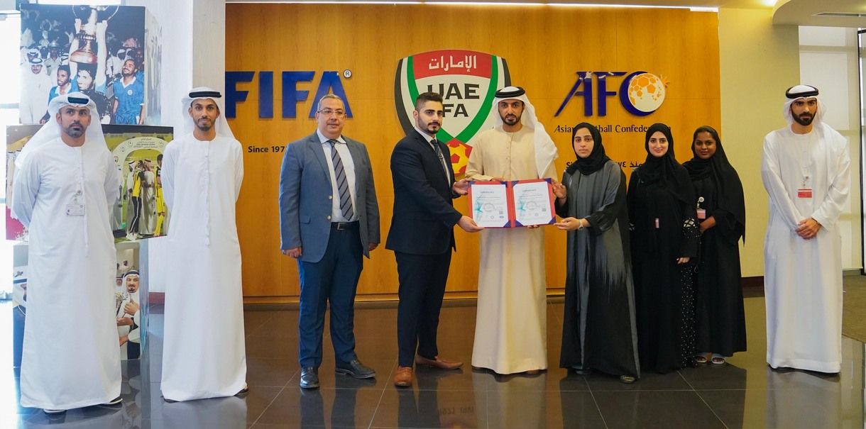 حصل اتحاد الإمارات لكرة القدم على الاعتراف الدولي بتطبيق مواصفتي الأنظمة الإدارية ISO Certificates/ «آيزو إدارة الجودة - الآيزو 9001:2015ISO» والآيزو في مجال الحوكمة المؤسسية الأيزو 2021:ISO37000» في ضوء حرصه منذ إنشائه، على اتباع وتطبيق أفضل الممارسات العالمية الرائدة في مجال إدارة الجودة والحوكمة المؤسسية، تجسيداً لتوجهات ورؤى القيادة الرشيدة لدولة الإمارات العربية وتحقيقاً لاستراتيجية الاتحاد.