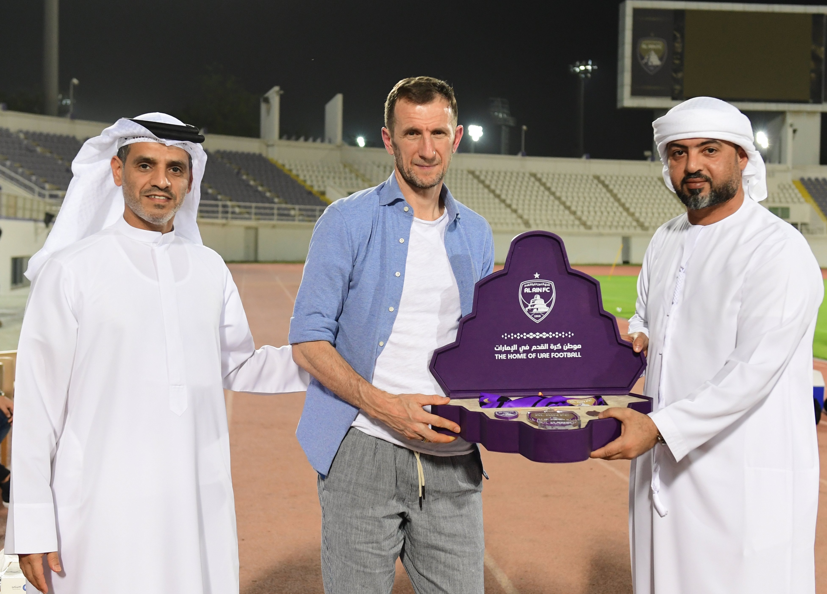 ورحب عبدالله علي، مشرف الفريق الأول لكرة لقدم بنادي العين، بالأرجنتيني، أروابارينا، وطاقمه الفني المعاون، وذلك على هامش الزيارة، والتي تضمن برنامجها اجتماعاً مع الأوكراني، سيرجي ريبروف، المدير الفني للعين، ومتابعة جانب من الحصة التدريبية المسائية، وفي ختام الزيارة أهدى عبدالله علي، المدرب الأرجنتيني، درع النادي التذكارية، بحضور مدير الفريق، أحمد الشامسي.
