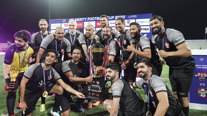 حقّق فريق «الاتحاد الإماراتي»، الفوز بثلاثية نظيفة، على فريق كل النجوم الإماراتي «ASFC» الذي ضم مشاهير من بوليوود، في مباراة خيرية نظمتها شركة «AG Events» للفعاليات، واستضافها مساء السبت الماضي استاد نادي شباب الأهلي في دبي، في مباراة تألق فيها كل من أسطورة السلة اللبنانية فادي الخطيب، بافتتاحه التسجيل لفريقه، وتسجيل مؤثر التواصل الاجتماعي عبدالعزيز بن باز الهدف الثالث.
