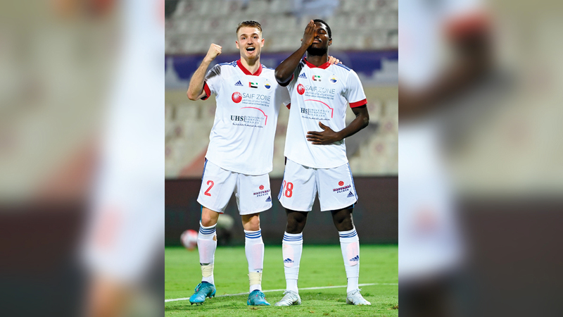 لاعبا الشارقة بن ملانغو (سجل أول هدف للشارقة) وغوستافو. تصوير: أسامة أبوغانم