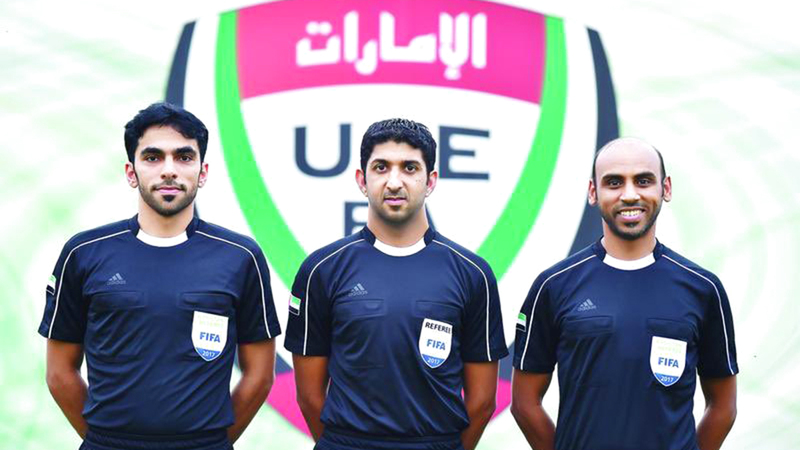 طاقم التحكيم الإماراتي بقيادة محمد عبدالله والمساعدين محمد الحمادي وحسن المهري. من المصدر