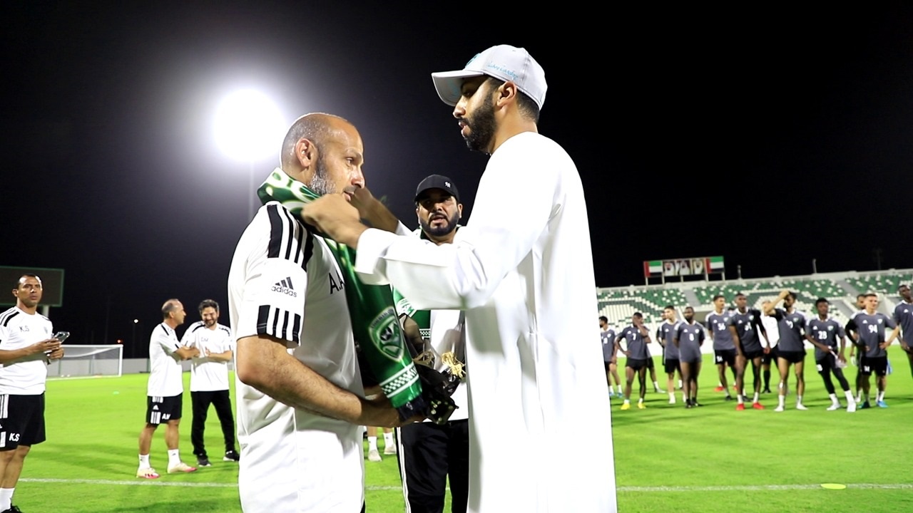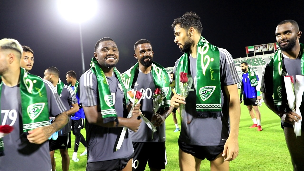 جمهور خورفكان يهدي العنبري واللاعبين باقات ورود (فيديو)