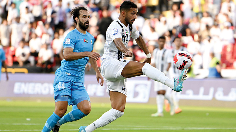 علي مبخوت سجل هدفي الجزيرة في دبا الفجيرة. تصوير: نجيب محمد