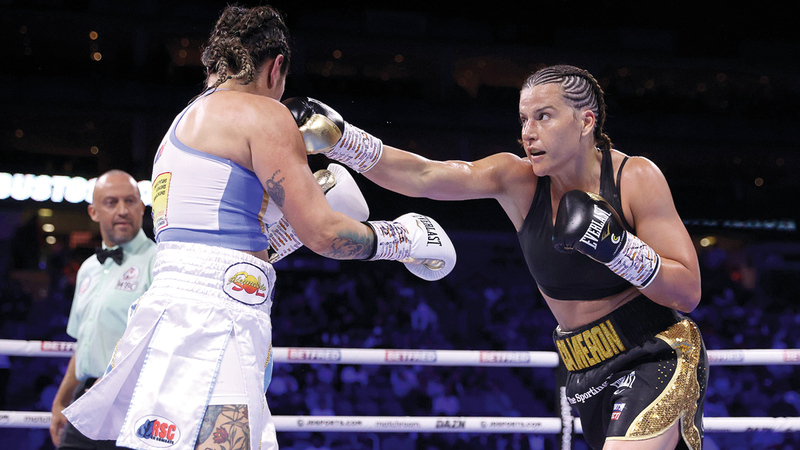 بطلة العالم البريطانية شانتيل كاميرون (يميناً) في نزال سابق. من المصدر