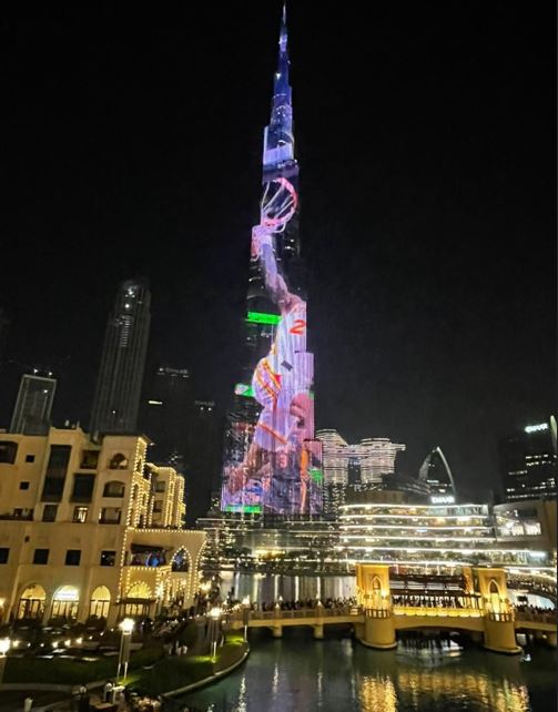 نظمت دائرة الثقافة والسياحة - أبوظبي، والرابطة الوطنية لكرة السلة الأمريكية اليوم عرضاً بصرياً على برج خليفة، احتفالاً بإطلاق العد التنازلي لمباريات دوري كرة السلة الأمريكي للمحترفين أبوظبي 2022.