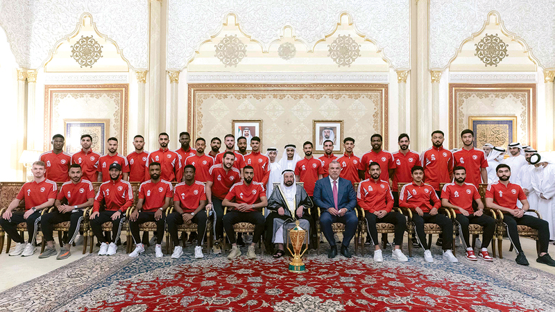 خلال استقباله فريق الشارقة بطل كأس رئيس الدولة