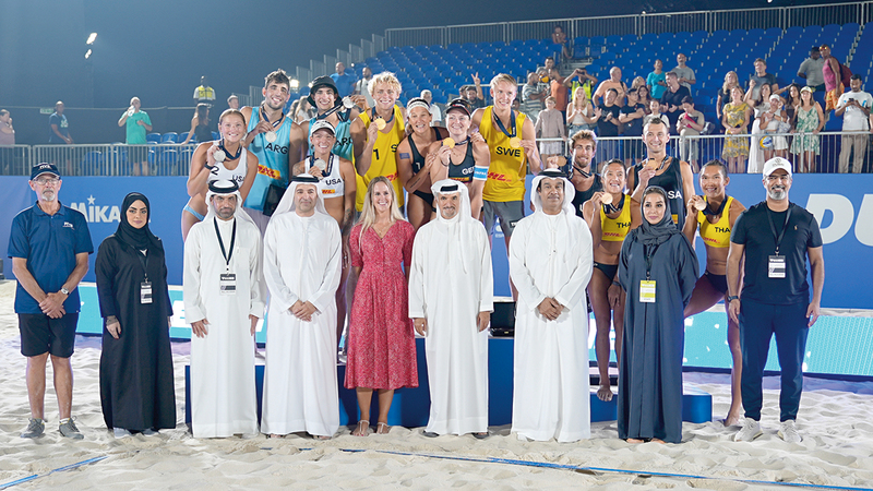 وتوج الفائزين بالبطولة والمراكز الشرفية، كل من أمين عام مجلس دبي الرياضي سعيد حارب، ومساعد الأمين العام ناصر أمان آل رحمة، ونائب رئيس اتحاد الكرة الطائرة جمال المطروشي، ورئيسة لجنة استضافة البطولات بالاتحاد الدولي لارا ماريش.