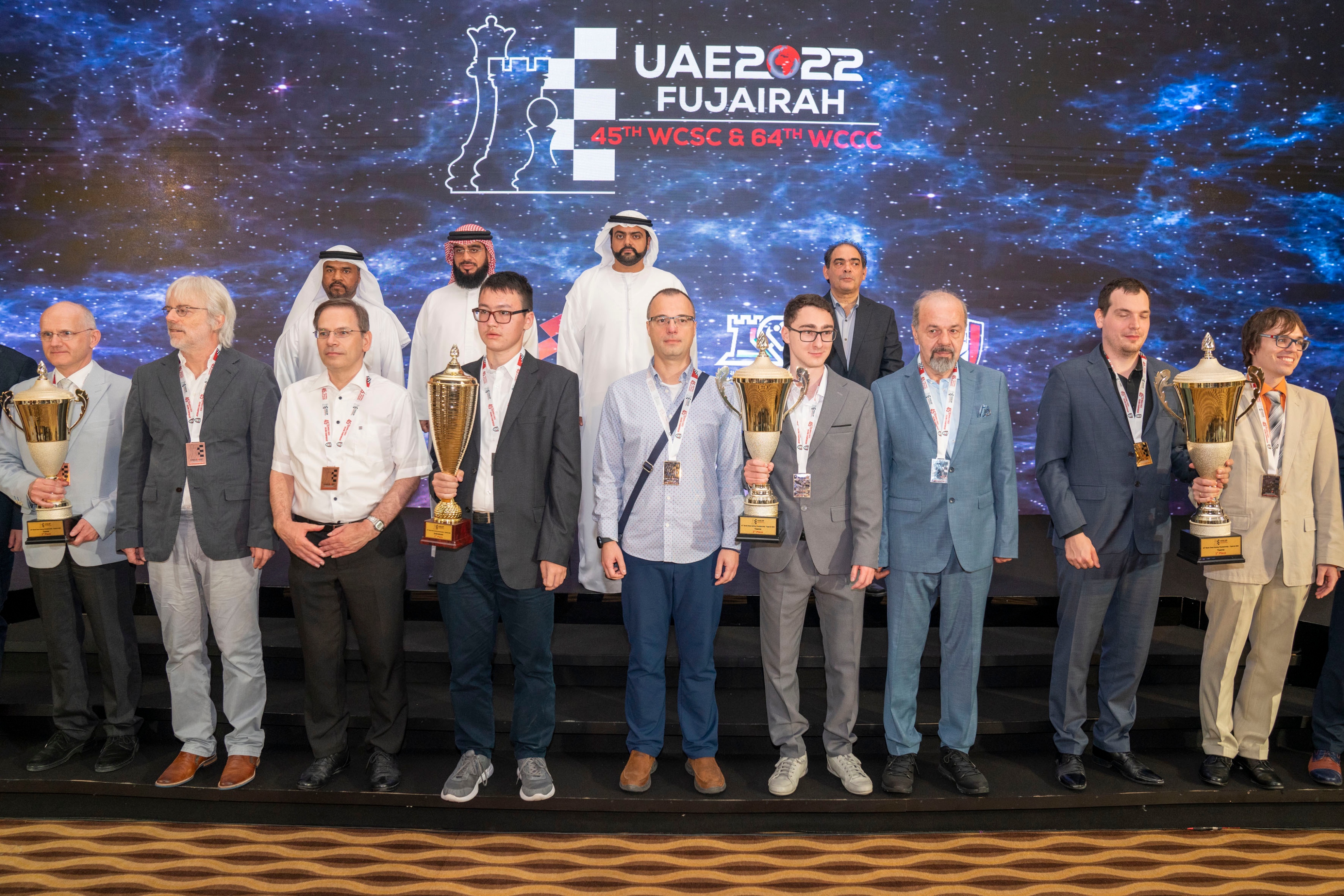 جاء ذلك خلال تكريم سمو ولي عهد الفجيرة، اللاعبين الفائزين في بطولة العالم لحل مسائل الشطرنج التي نظمها نادي الفجيرة للشطرنج والثقافة في فندق نوفوتيل بالفجيرة، بحضور الشيخ عبدالله بن حمد بن سيف الشرقي رئيس اتحاد الامارات لبناء الاجسام واللياقة البدنية والشيخ سعود بن عبد العزيز المعلا نائب رئيس الاتحاد الدولي للشطرنج ورئيس النادي العربي للشطرنج ورئيس الاتحاد الدولي للشطرنج هاري فوجياكيس.