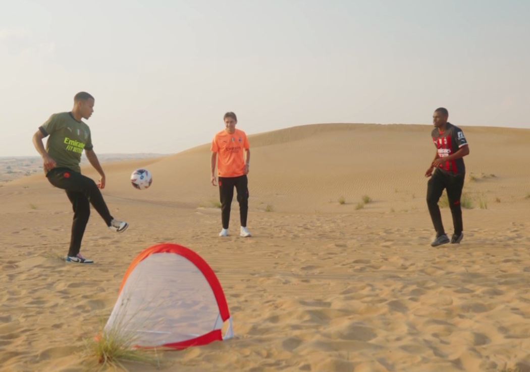 وجاء الدور بعد ذلك على أرسنال بقيادة الكابتن مارتن أوديغارد وكيران تيرني وإدي نكيتياه وناثان بتلر أويديجي. وجرب اللاعبون نسختهم الخاصة من كرة القدم الشاطئية، مع ظهور برج العرب في الخلفية حيث تحدوا مهارات بعضهم البعض وأدّوا ركلات مذهلة. وتحدى لاعبو ميلان بيير كالولو وسيبريان تاتاروسانو وأستر فرانكس في بيئة مختلفة تماماً، وهم يحاولون تغيير الملعب وإحراز أهدافهم بطريقة مبهرة وسط صحراء دبي.