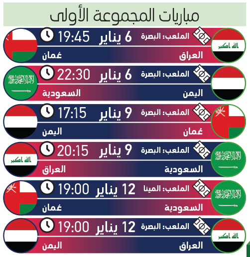 يراهن منتخب العراق على الجمهور وخوض منافسات «خليجي 25» على أرضه، لتحقيق اللقب وإنهاء سنوات طويلة من المعاناة، إذ تتوق كرة القدم العراقية والجماهير المتعطشة في البصرة إلى إنجاز، لكن الضغوط ستكون كبيرة على تشكيلة من دون أسماء بارزة يقودها مدرب قليل الخبرة في منصب الرجل الأول.