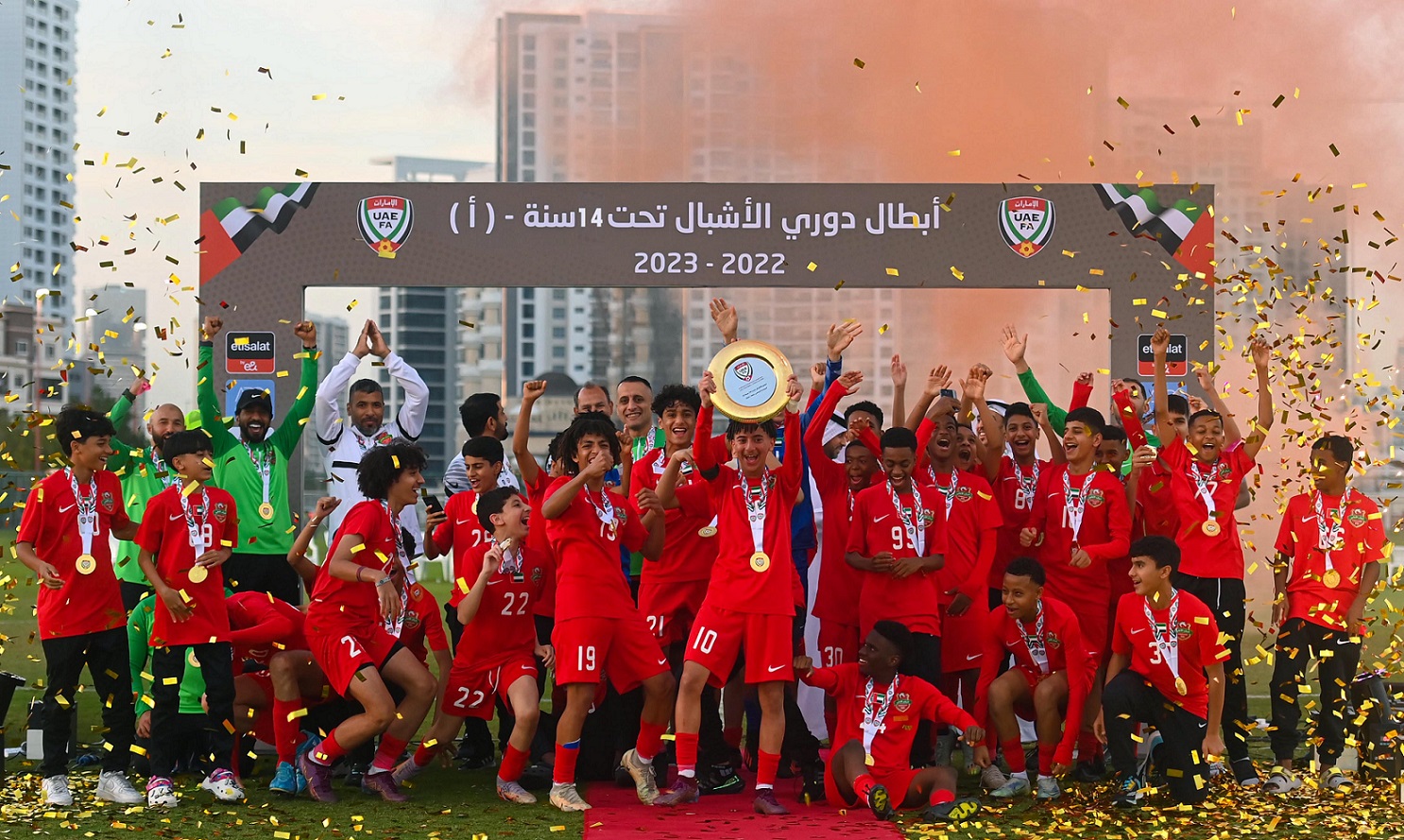 توج فريق شباب الأهلي بطلاً لمسابقة تحت 14 سنة ( أ ) التي ينظمها اتحاد الإمارات لكرة القدم، وحسم شباب الأهلي اللقب بعد تصدره لجدول الترتيب برصيد 43 نقطة، بفارق أربع نقاط عن الوصل صاحب المركز الثاني، وذلك بعد فوزه على العين بهدفين دون رد في الجولة الأخيرة من البطولة.