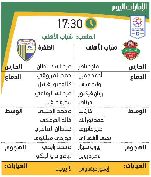 ويمتلك «فرسان دبي» في رصيده 33 نقطة بالمركز الثاني بفارق نقطة عن المتصدر الشارقة، إذ يسعى شباب الأهلي إلى «رد الدين» إلى الظفرة الذي حقق أول انتصار له في المسابقة بالدور الأول على حساب شباب الأهلي بفوزه بثلاثة أهداف مقابل هدفين في لقاء الذهاب.